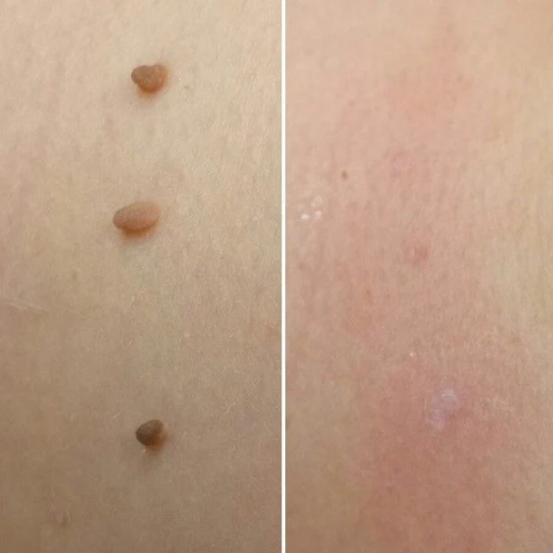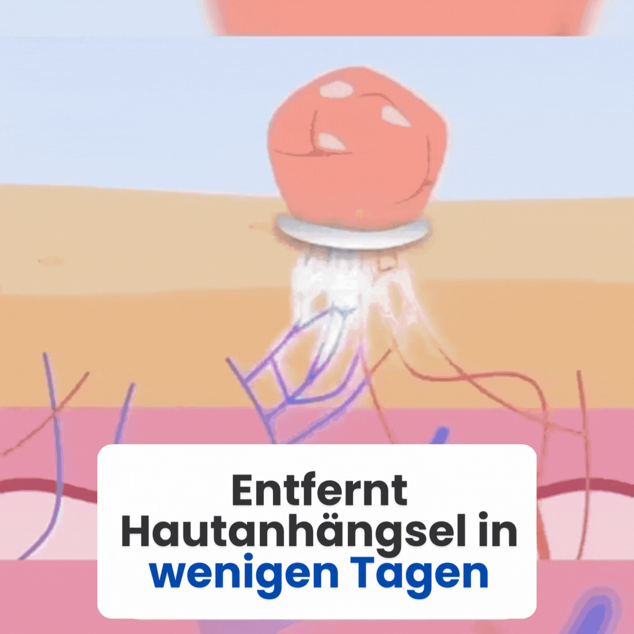 Die genaue Dauer hängt von der Größe des Hautanhängsels ab, aber der gesamte Prozess ist völlig schmerzfrei und erfolgt auf natürliche Weise.