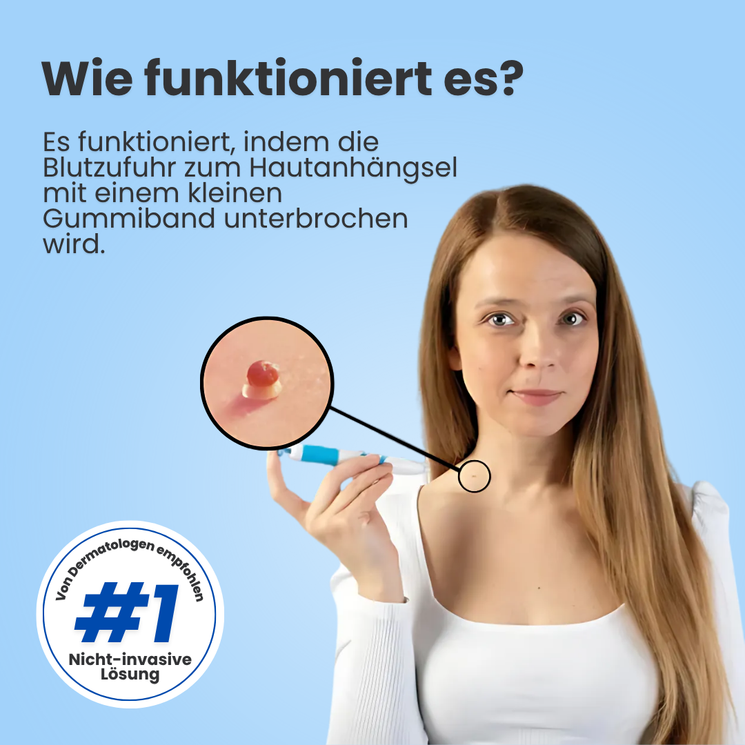 Entfernen Sie Ihre Hautanhängsel ganz einfach ohne Schmerzen und ohne Blutungen – dank DermaTag, der von Dermatologen empfohlenen Lösung für eine sichere Anwendung zu Hause.