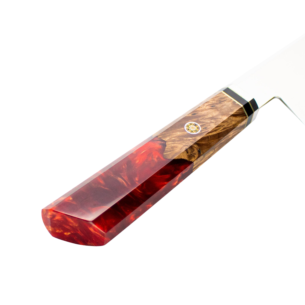 Mit traditionellen achteckigen Griffen, durchgehendem Erl und verzierten Mosaiknieten bieten die KIRITSUKE PRO™ Messer einen sicheren Halt und präzise Klingenführung.