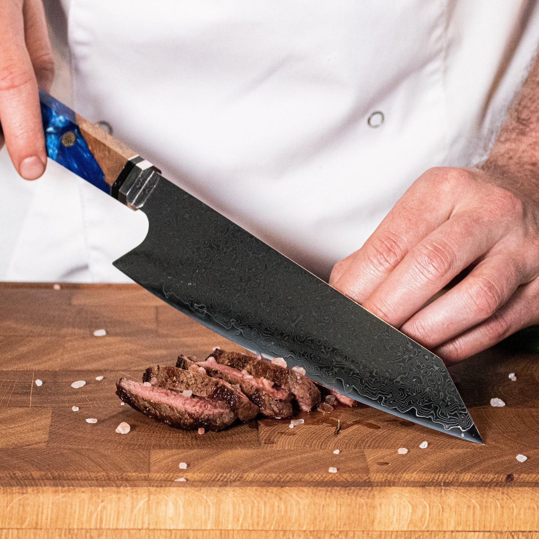 Die KIRITSUKE PRO™ Messer, geschmiedet aus 69 Lagen Damaststahl, überzeugen durch außergewöhnliche Widerstandsfähigkeit und Schärfe – und verleihen Ihrer Küchenausstattung einen Hauch von Eleganz.