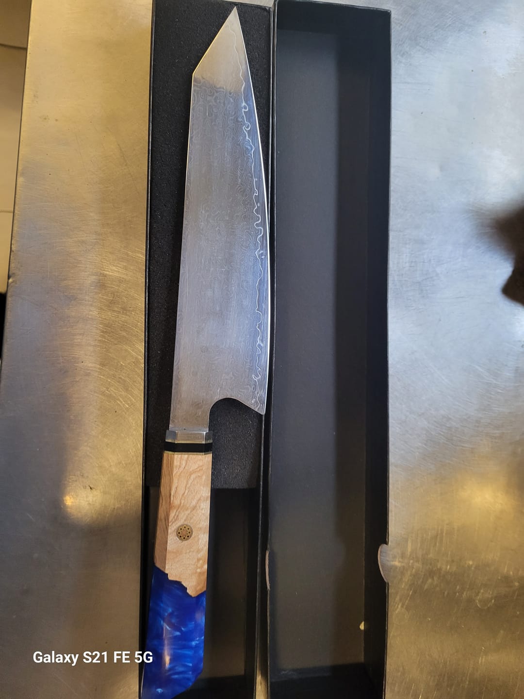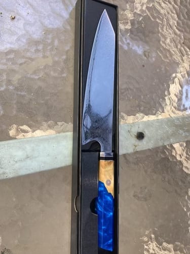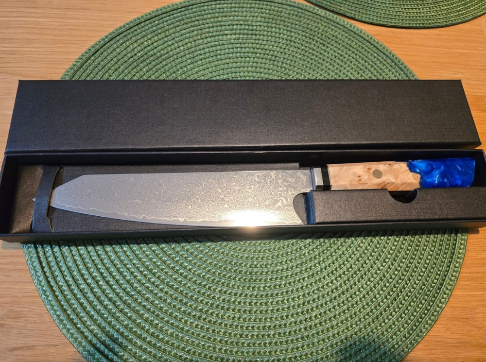 Diese Messer sind absolut wunderschön, hervorragend verarbeitet und rasiermesserscharf! Wenn Sie ein hochwertiges Kochmesser suchen, das sich von herkömmlichen Messern abhebt, ist dies genau das Richtige für Sie. Ich bin begeistert von diesen Messern und plane, eins meinem Sohn zu schenken, der ebenfalls gerne kocht.