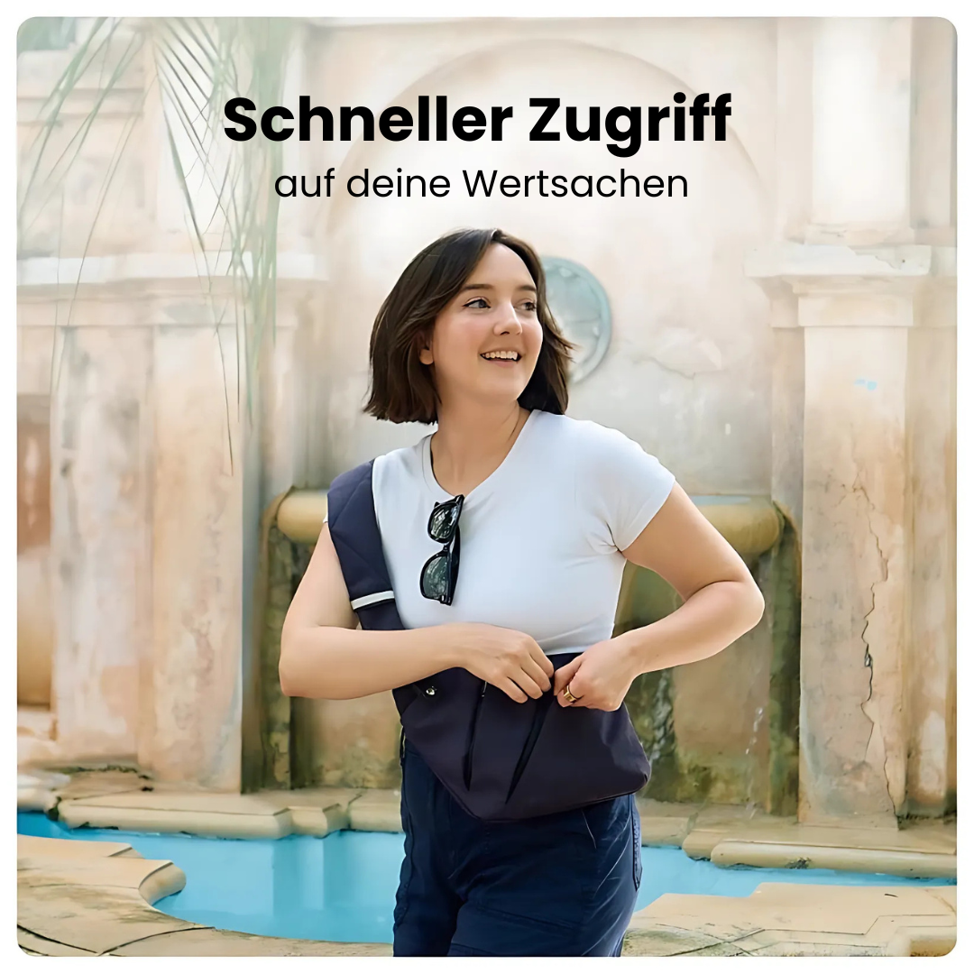 Wasser- und diebstahlsichere Sling-Tasche mit versteckten Reißverschlüssen. Perfekt für Reisen und den täglichen Gebrauch. Tragen Sie alles, ohne Kompromisse bei Qualität oder Stil einzugehen.
