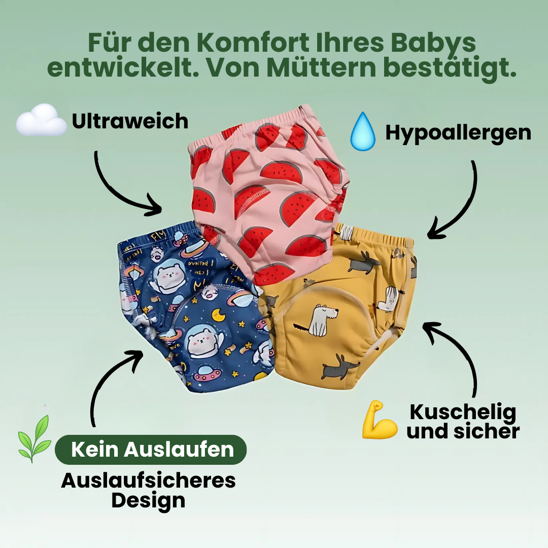 Unsere Lernhöschen zeichnen sich durch ihr innovatives 2-Schicht-Design aus und bieten eine einzigartige Erfahrung für Eltern und Kinder.